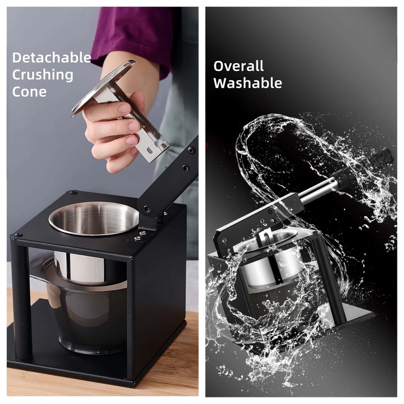 - 【High-quality material】 Overall cast iron material, stable, durable and pressure-resistant. Juicing inner tank and crushing cone are made of food-grade stainless steel, which is safe and healthy in contact with pulp, and can be used with confidence.