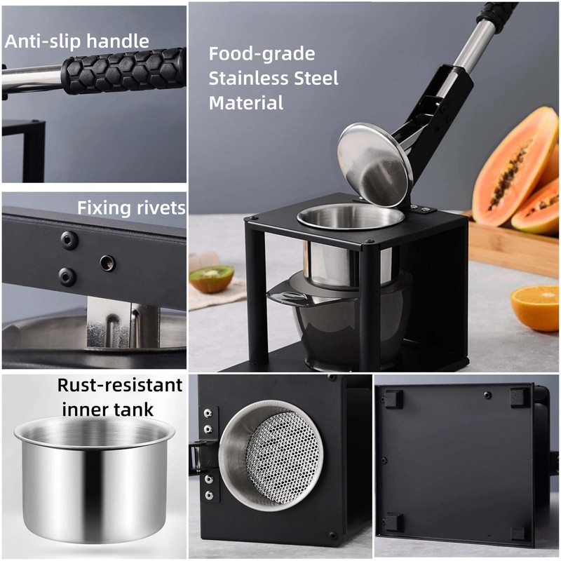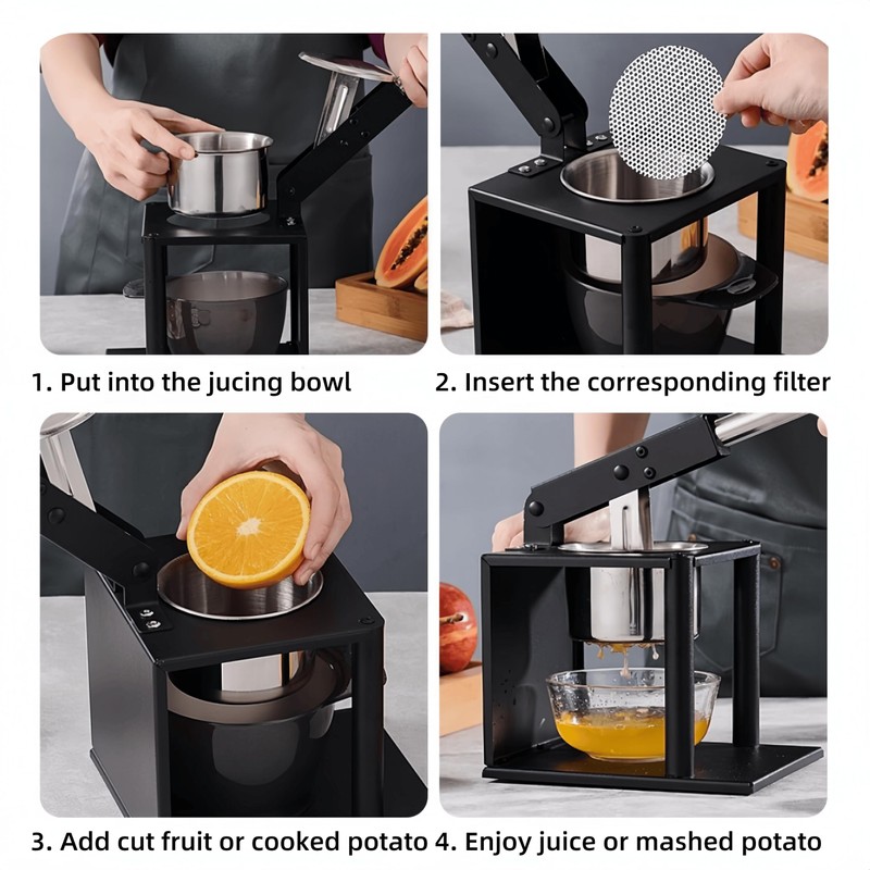 - 【Perfect manual juicing】 Labor-saving lever design, easy to press, fast and efficient juice extraction. Fine-pored filter perfectly separates pulp and seeds, and squeezes out pure, residue-free fresh juice.