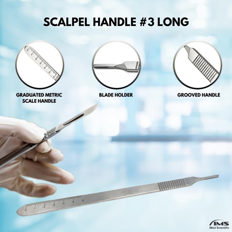 - ✅ REUSABLE ALL-PURPOSE TOOL: 100% stainless steel construction makes these instruments easy to sterilize and can be fully autoclaved without fear. A safe and hygienic choice, scalpel Handle No 3 long is used with a wide range of carbon steel or stainless steel blades. Extensively used by professional, experts and amateurs, alike.