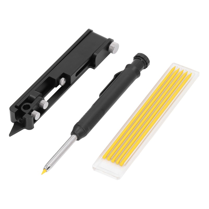 Multi Function Scribing Tool Aluminum Alloy Woodworking Scriber Line Drawing Tool Construction Pencil with Refills Yellow