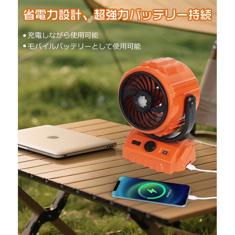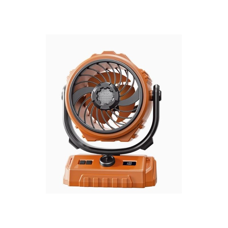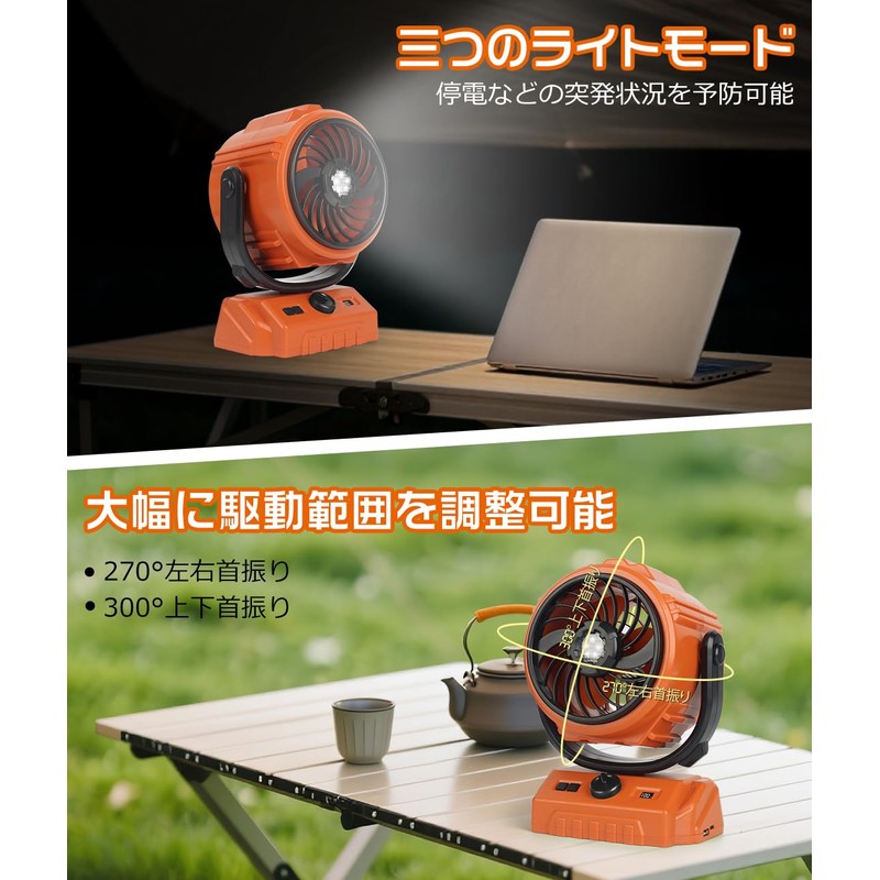 Multi-functional, Camping Fan, Rechargeable, LED Light, Hanging, USB/Type-C Charging, 270° Automatic Oscillation, 100 Levels of Air Flow Adjustment, Disaster Prevention, Camping, 0.6 kg, Lightweight