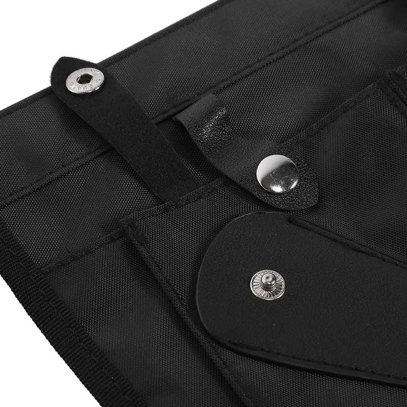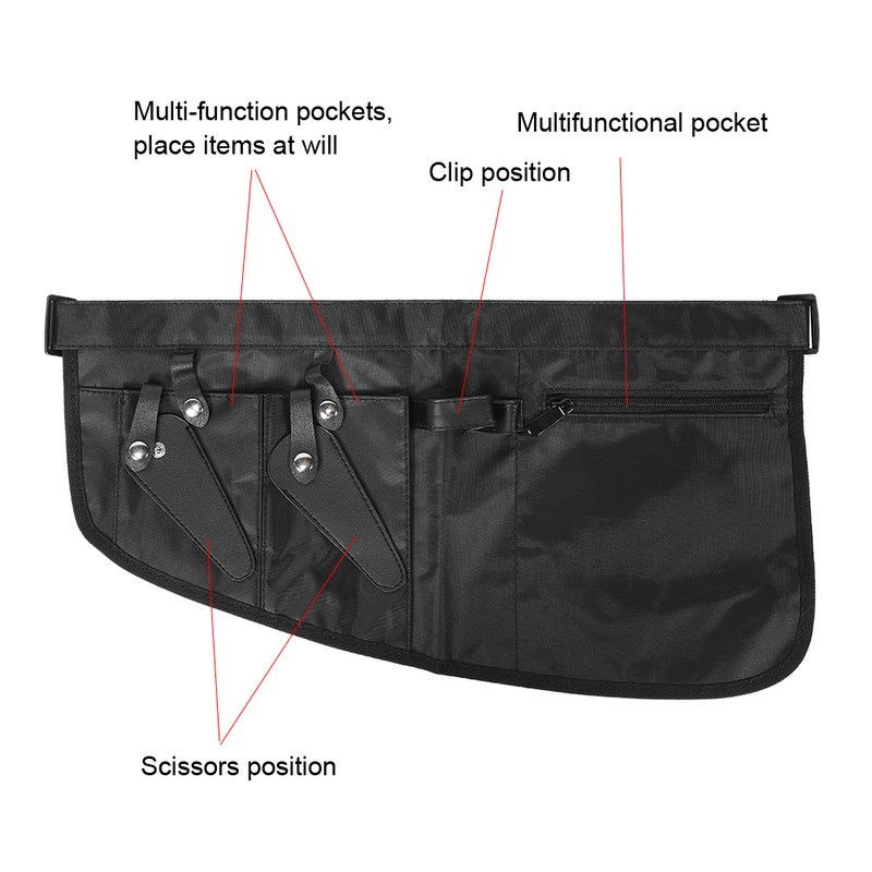 1、Large storage space, can accommodate scissors, combs, hair clips and other hairdressing tools. 2、The layout designs are very reasonable and humanized, you can easily find tools you need. 3、Exquisite workmanship, overall looks simple and elegant, professional and practical. 4、Made of quality non-woven fabric, soft and delicate, stable and durable. 5、Removable belt can be tied around the waist or shoulders, convenient and considerate.
