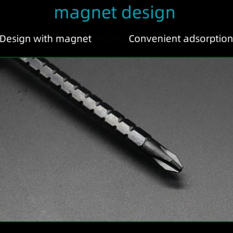 - Magnetic adsorption: The head is magnetic and can firmly attach screws, avoiding screws from falling off during narrow spaces, high-altitude operations, or deep hole operations, reducing the trouble of finding screws, and greatly improving operational efficiency.
