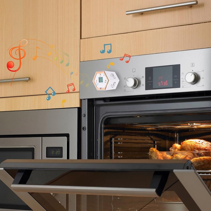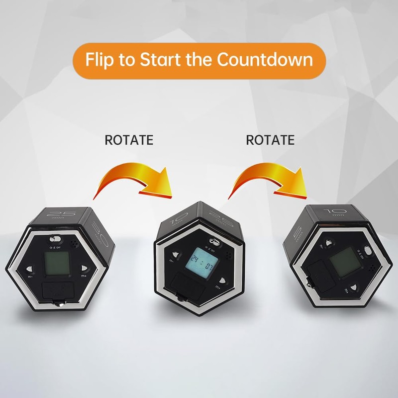 Multi Hexagon Cube Timer, Gravity Sensor Digital Timer, LED Screen, Sound Alarm, Silent Operation, 1/5/10/25/30/60 Minutes, Customize Your Own 1-99 Minutes, Kitchen Time Management Tool for Kids, Test