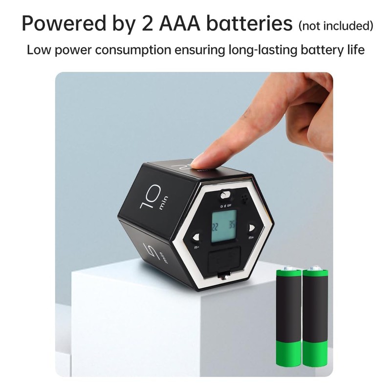 BATTERY EFFICIENT DESIGN: Powered by two AAA batteries (not included) this multi-hexagon timer runs low power consumption and extends battery life so you can focus on managing time efficiently.