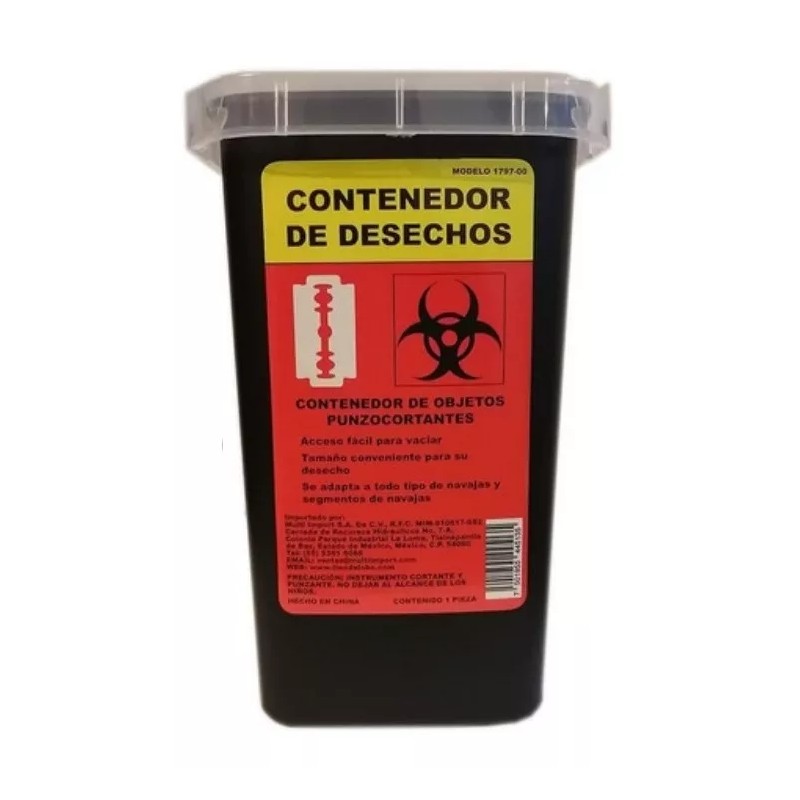 Contenedor desechable seguro para agujas, jeringas, lancetas, navajas y objetos filosos.