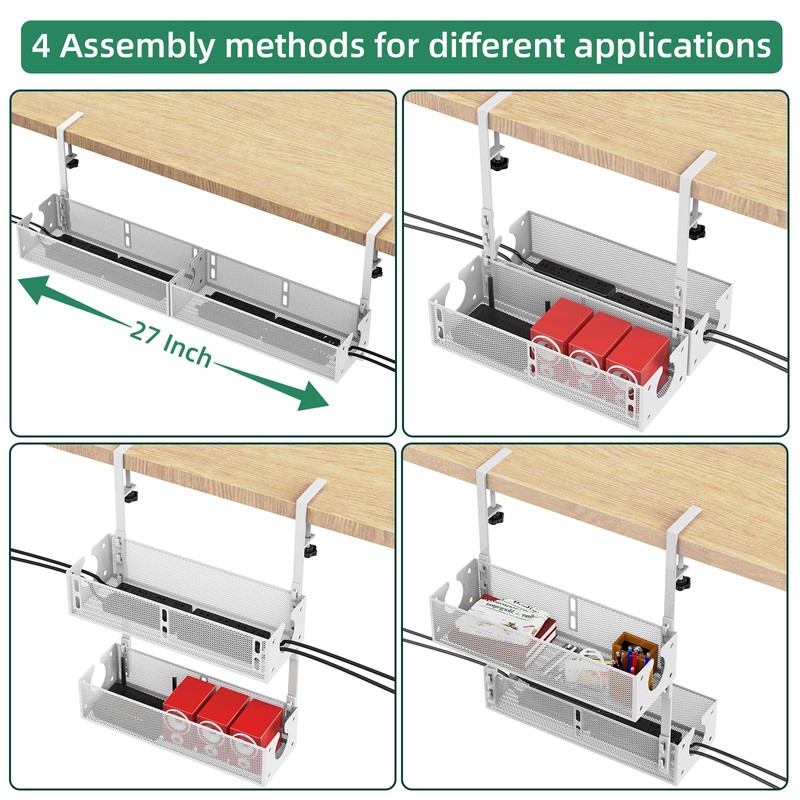 - MULTI-MODEL DESIGN : Our Multi-Model Under Desk Cable Management Trays Can Be Assembled To Suit Different Needs, You Will Get 2 Trays For The Price Of 1, Making The Cable Management Trays Longer, Wider Or Taller Depending On The Usage Requirements!