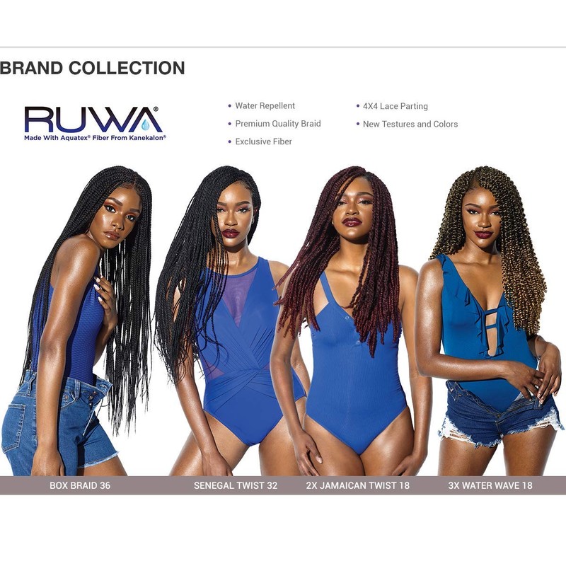 * Made with AQUATEX fiber from KANEKALON * Water repellent * Fast drying * Lightweight and Soft * Perfect Hair for an active Lifestyle * Pre-stretched to save on prep time * Pre-layered for a natural finished style To maintain your RUWA Braids: