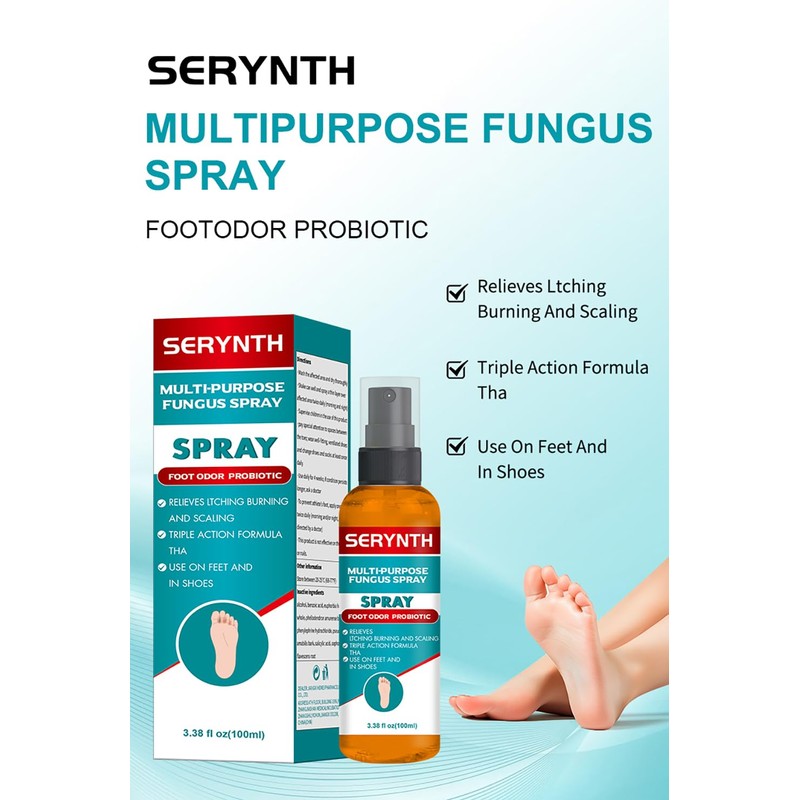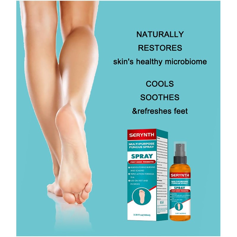 Multi-Purpose Fungal Spray, 3.38 fl oz Foot Odor Probiotics, Foot Relief, Triple Action Formula Foot Odor Probiotic Spray for Feet and Inside Shoes