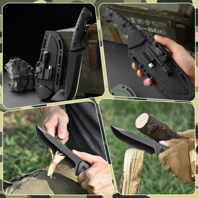 - 【Premium Full Tang Tool】:Die 19.5 cm Tool aus hochwertigem Stahl mit 5 mm Dicke bietet herausragende Stabilität und Langlebigkeit, perfekt für anspruchsvolle Outdoor-Aktivitäten, Bushcraft, und Jagd als leistungsstarkes Tool.