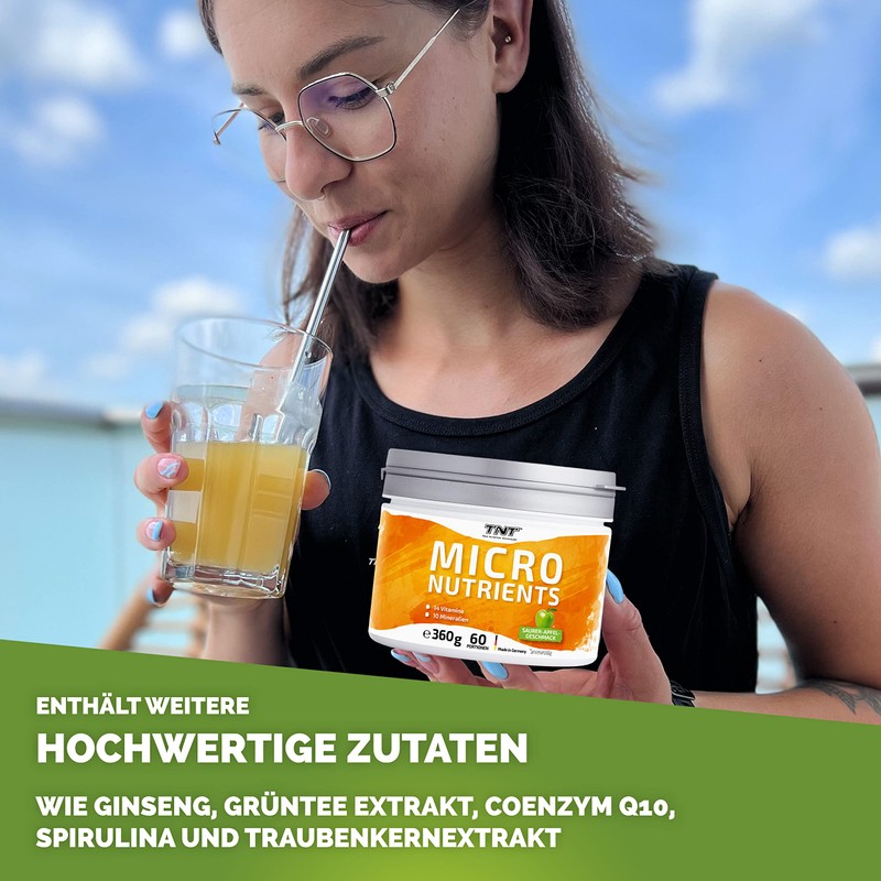 - All-in-one vitamin powder – TNT micronutrients contains many important vitamins and minerals and in addition green tea and ginkgo biloba extract, spirulina powder and coenzyme Q10. So you can easily meet your need for micronutrients. Ideal during a diet, sports or muscle exertion.