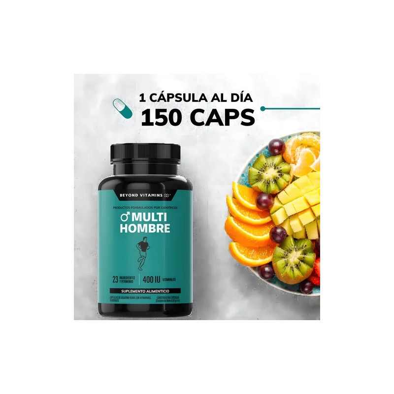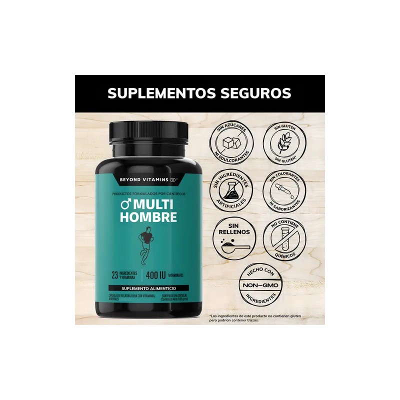 Este complejo de vitaminas Beyond Vitamins contiene una combinación de ingredientes como Biótina, Magnesio, Te Verde, L argnina, Jengibre, Vitamina C, Calcio, Acido Folico y 24 Ingredientes y Vitaminas adicionales.