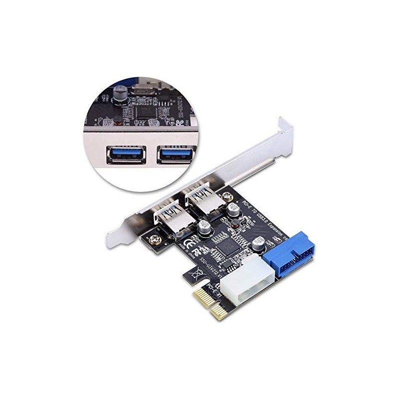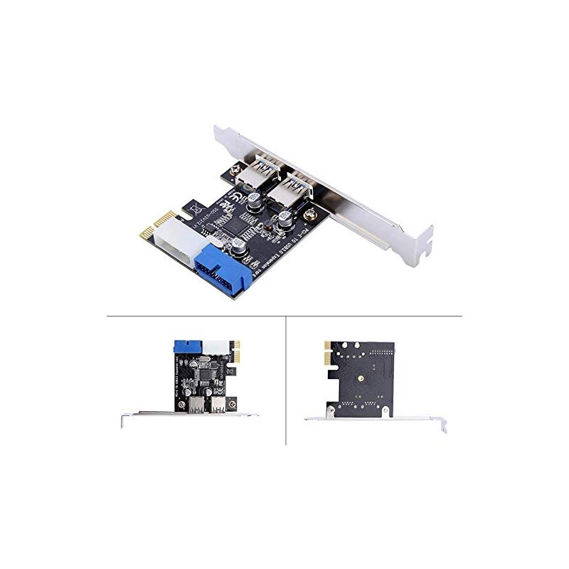- This pci express usb 3.0 expansion card will allow users add on two USB 3.0 ports on desktop computers though PCIE slot .The USB 3.0 ports will provide 5Gbps max data(total) transfer speed for video ,audio ,photos or files. Full height bracket included works on Slim Size PCs and Standard Size PCs.