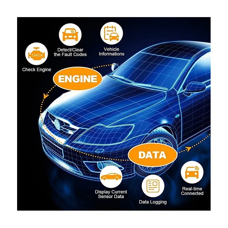 • The top-quality Bluetooth OBD2 scanner can read manufacturer-specific, general and diagnostic fault codes and display their meanings (more than 3000 general code definitions in the database), clear fault codes and turn off MIL, view car performance, and directly display it in your Real-time sensor data is displayed on the mobile phone, saving time and money by solving car problems quickly and accurately.