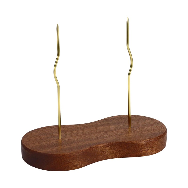 Multibey Sapele Wood Receipt Spike Holder, Double-Insert Ticket Spike Bill Holder Fork with Wooden Base, Wooden Memo Holder Spike Holder Organizer for Office Kitchen Restaurant