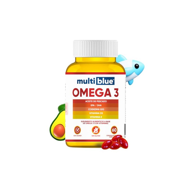 MultiBlue - MultiBlue - Omega 3 Salmon Oil 60 Capsulas | Con Aceite de Pescado, EPA, DHA, CoQ10, Vitamina D3 y E | Sin Gluten, 100% Naturales, Libres de OMG | Certificado GMP | 2 caps diarias, 1 mes - Sabor Limon. โญ Calidad premium certificada con excelentes reseñas. Materiales de alta gama y acabados premium. โญ Miles de reseñas positivas. Ideal para quienes buscan lo mejor en calidad y estilo. Producto auténtico con satisfacción total asegurada. ¡No te quedes sin el tuyo y aprovecha esta oportunidad única!