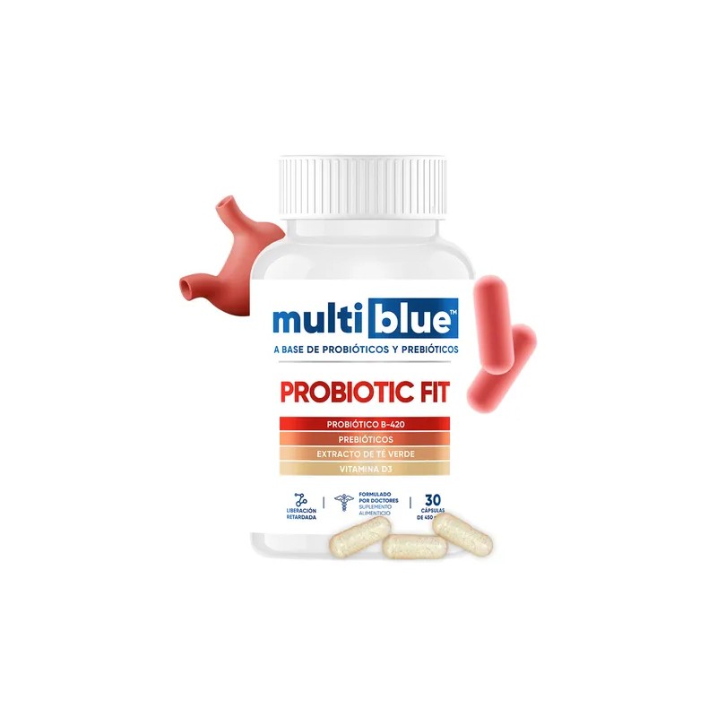 Multiblue - Probioticos Prebioticos Y Vitamina D3 - 30 Caps Sabor Té Verde