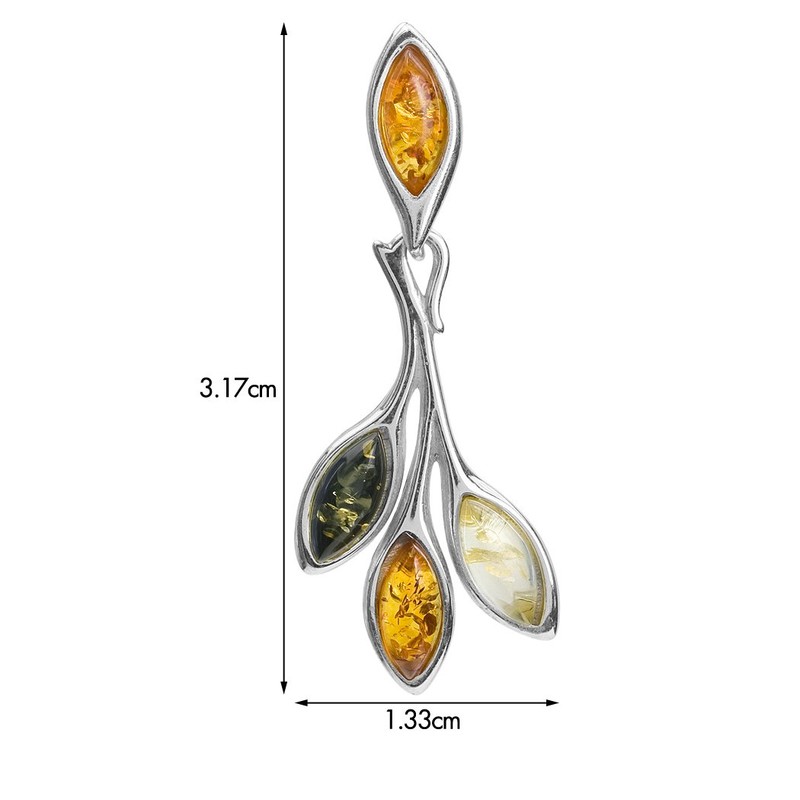 Multicolor Amber Sterling Silver Leaf Stud Earrings