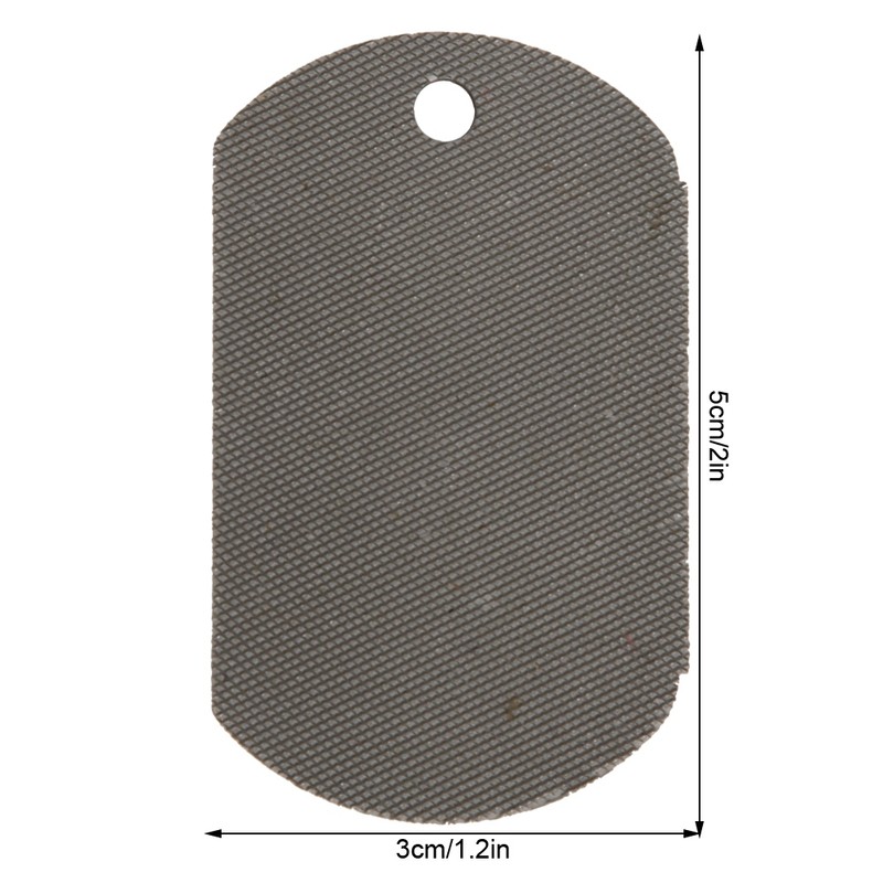 1、Made of high-quality high carbon steel material with the features of strong, hard and durable, not easy to break, ensures long time use. 2、The product has a smooth surface and a mesh surface. The mesh surface can be polished, rust removed and nail polished. 3、The product can be worn as a pendant and a key pendant. It is compact and easy to carry. 4、Used with firestone, put the carbon cloth under the firestone and strike the firestone with this tool to produce spark. 5、Great fire starting tool, used as outdoor camping tool and survival supplies.