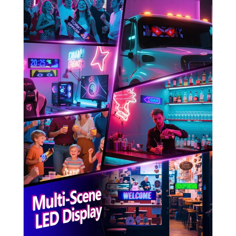 - [ Smart Dual RAM/ROM Chip + Bluetooth 5.0 App Control ] Equipped with a next-generation upgraded chip, CoolLED1248 supports full-color text, endless patterns, and dynamic animations with effortless customization. Fine-tune brightness and speed, choose from 13 unique playback modes, and mix and match countless color and text templates - all with lightning-fast Bluetooth 5.0 control for a seamless user experience.