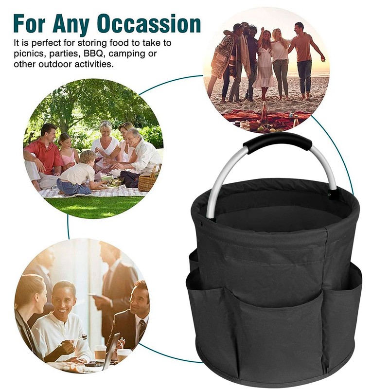 Multifunctional Foldable Basket Portable Picnic Basket Beach Bath Wash Gardening Tool Bag Handy Caddy Camping Car Home Bathroom Supplies Storage Carry Organizer (Black)