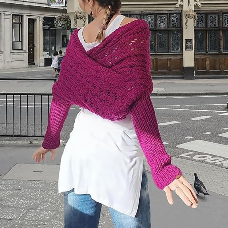 - Versatile Design: This scarf sweater with sleeves combines the warmth of a sweater with the elegance of a shawl, making it an ideal choice for women. It can be worn as a cozy knitted shawl or as a fashionable scarf, suitable for all occasions.