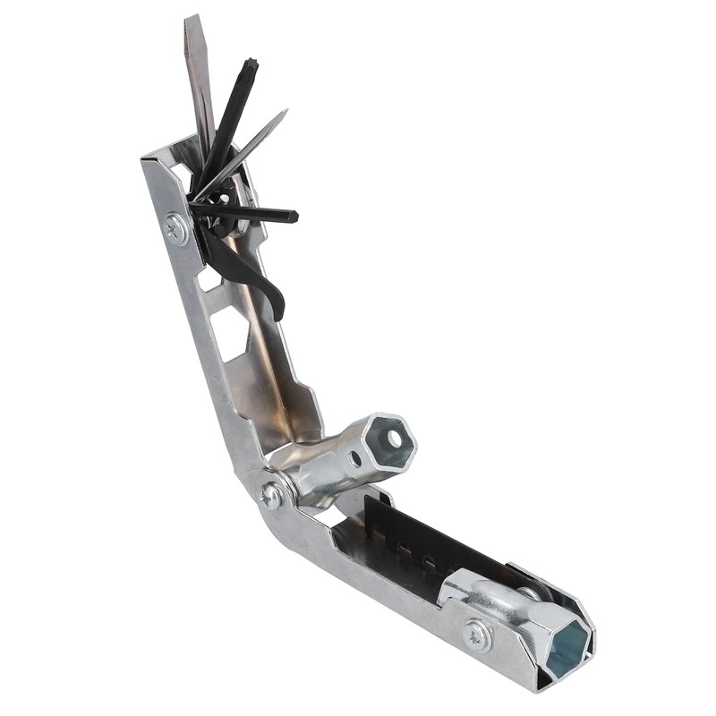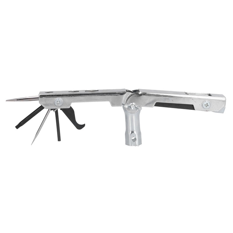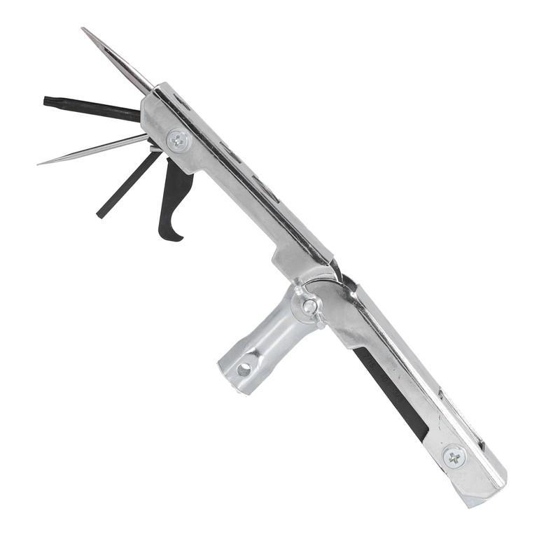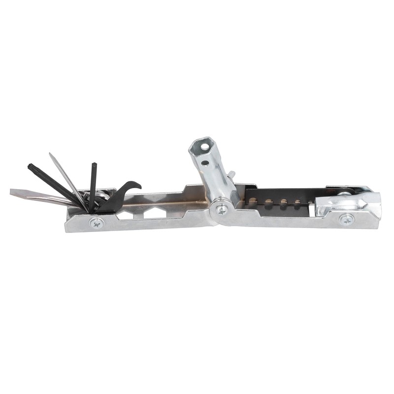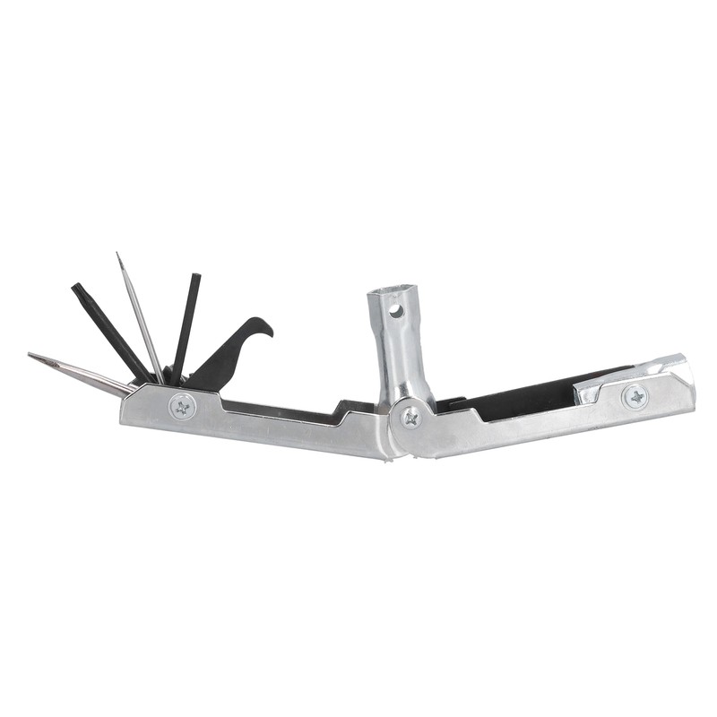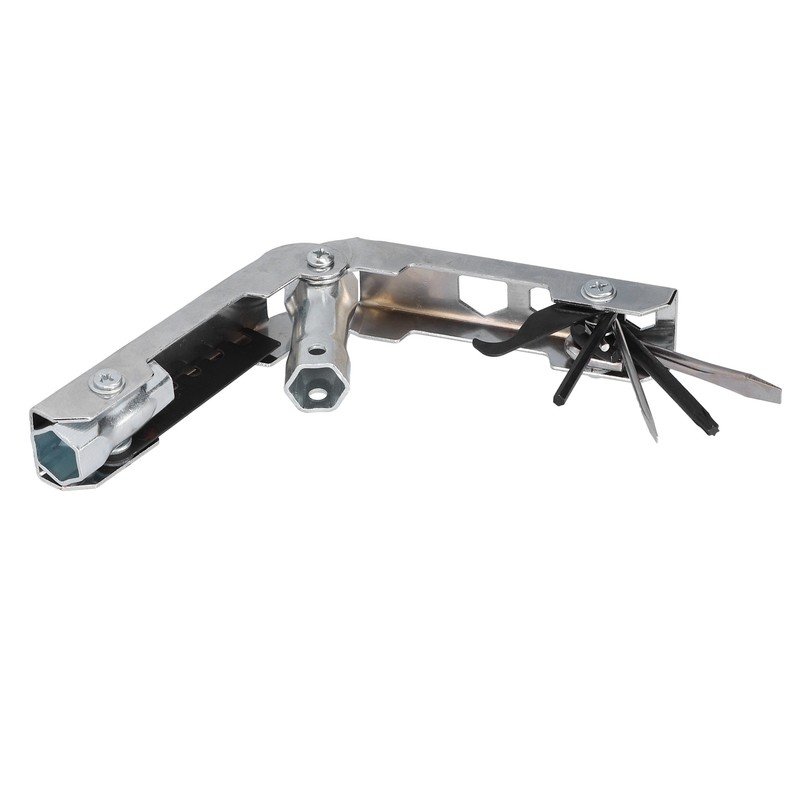 Features: All in one electric saw tool, equipped with a large screwdriver, a T27 for all bolts  for Stihl chain saw, a small screwdriver, a 4 mm inner hex wrench for Husqvarna saws, A 13 mm (1/2 in) socket on which a half wrapped or full wrapped saw with a bar nut for Husqvarna saw can be mounted, and a deep socket for spark plugs on all saws (19 mm x 10 mm and 21 mm x 16 mm) and a bar nut on for Stihl saw. It can also be used as a chain saw file handle