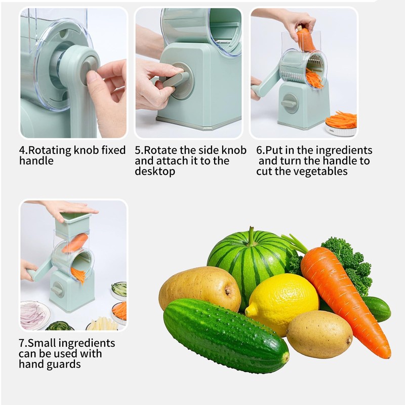 - 【Five in one multifunctional vegetable cutting】Equipped with 5 types of blades, it can easily cut wavy flower pieces, fine threads, thick threads, and thin sheets, and also grind ingredients to meet various cooking needs, saving time and effort!