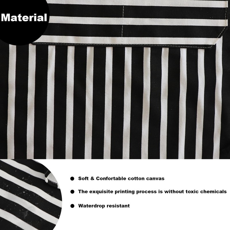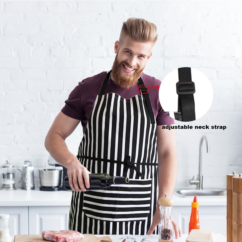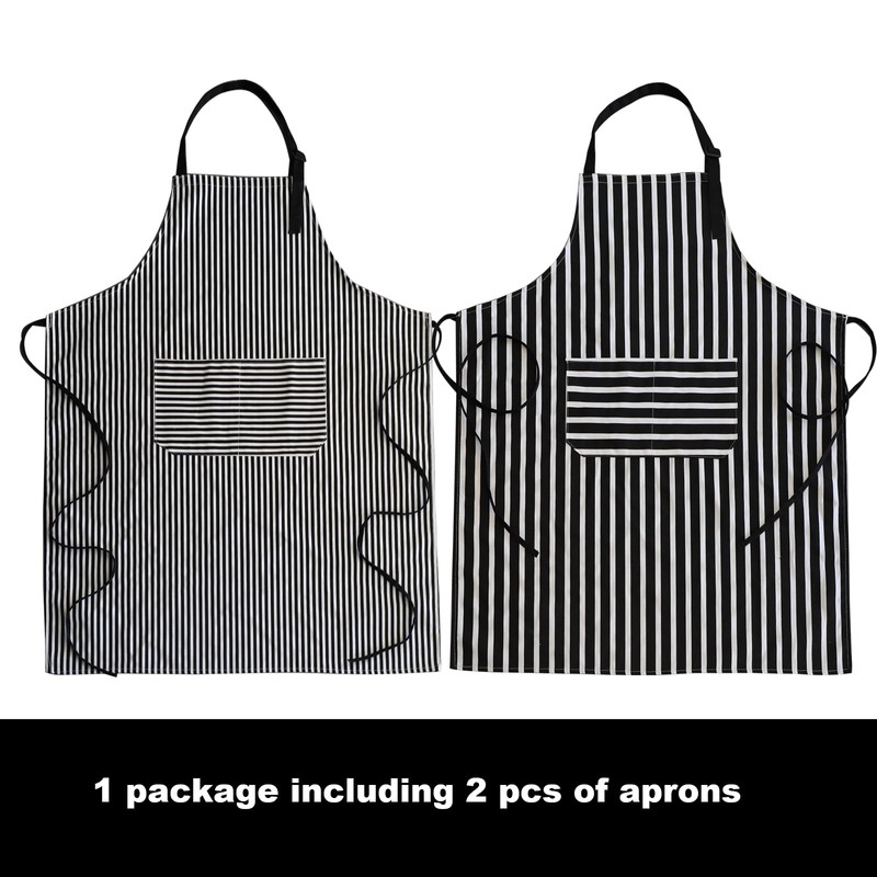 - Packing:1 package including 2 pcs of black stripes aprons.The cooking apron is really a good choice for us to cook a delicious dinner with our wife/husband, family or friends.