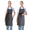 multifuns 2 Pcs Black Stripes BIg Size Aprons for Men Women, 100% Cotton Adjustable Bib Grill Large Aprons with 2 Pockets for Kitchen Cooking Garden Apron with pockets (60 * 80cm, Black Stripes)