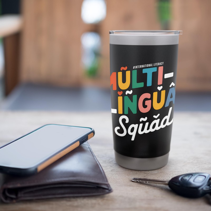 Multilingual Squad International Literacy Day Teach Language Stainless Steel Insulated Tumbler