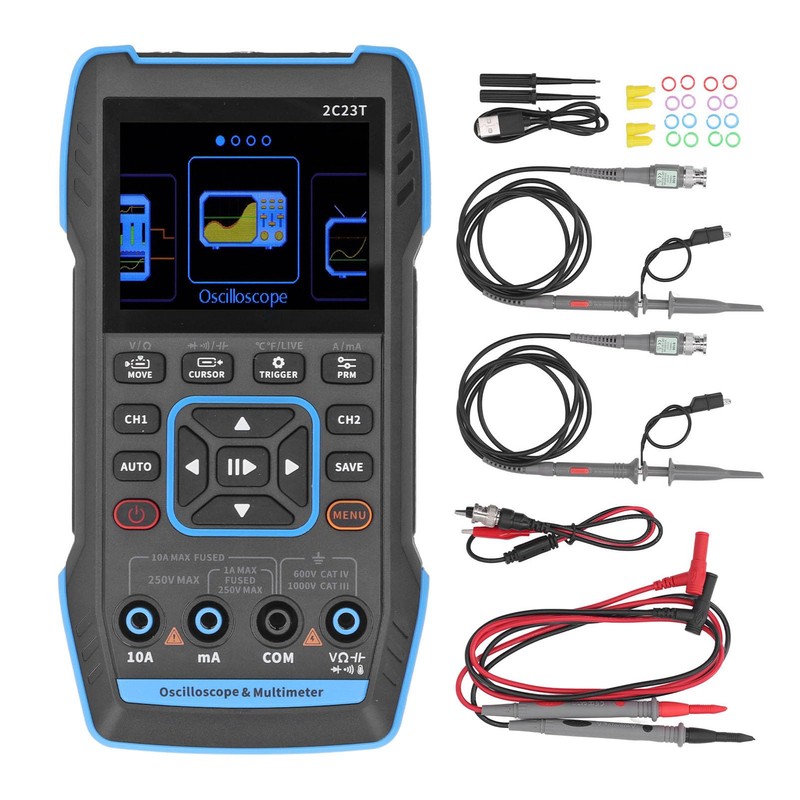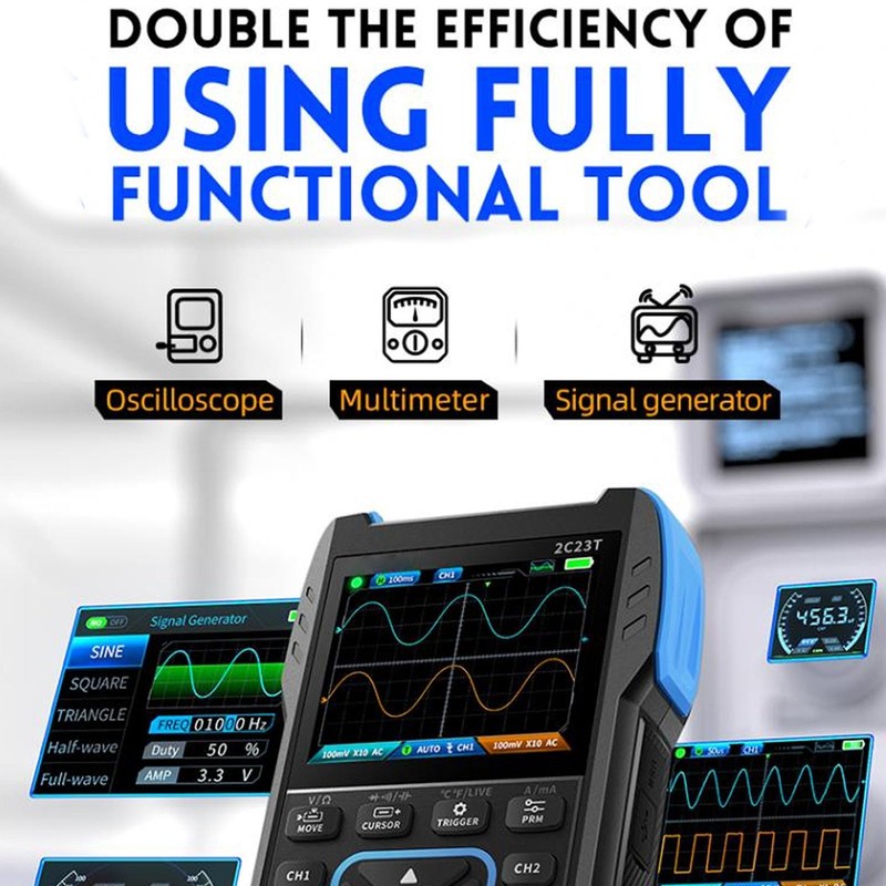 - MÚLTIPLES FUNCIONES: El 2C23T es un oscilógrafo digital de dos canales tres en , muy práctico y con todas las funciones, dirigido a la industria de mantenimiento y a la industria de I+D. El dispositivo tiene tres funciones: osciloscopio, multímetro y generador de señales.
