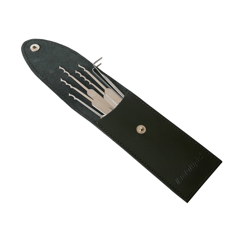 • Profile cylinders and padlocks can be opened. The pick set is delivered in a high-quality genuine leather case