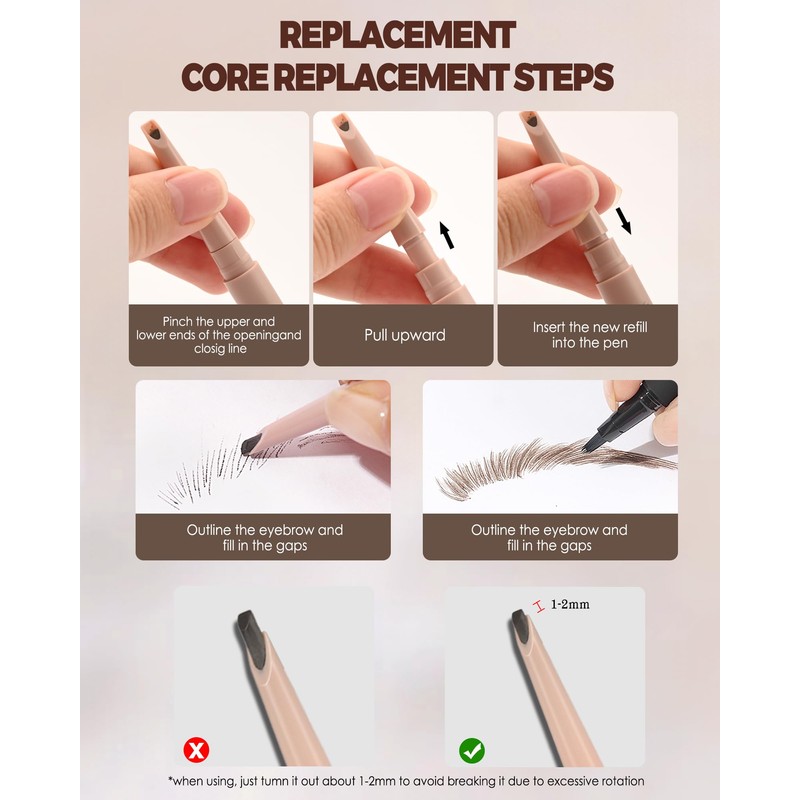 - Natural Brow Shape - The Multi-Fork Tip Square Liquid Eyebrow Pencil in the set is a godsend for creating wild brows. The unique multi-fork design accurately mimics the direction of hairs, creating a well-defined, naturally fitted wild eyebrow effect, giving you a naturally thick eyebrow.
