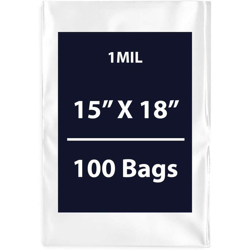 Multiple Sizes Clear Flat Poly Bags, 1Mil 15" X 18" & 100 Bags | Low-Density Polyethylene (LDPE), Flat Open Top Plastic Packaging Packing | Flexible and Durable Plastic Bags