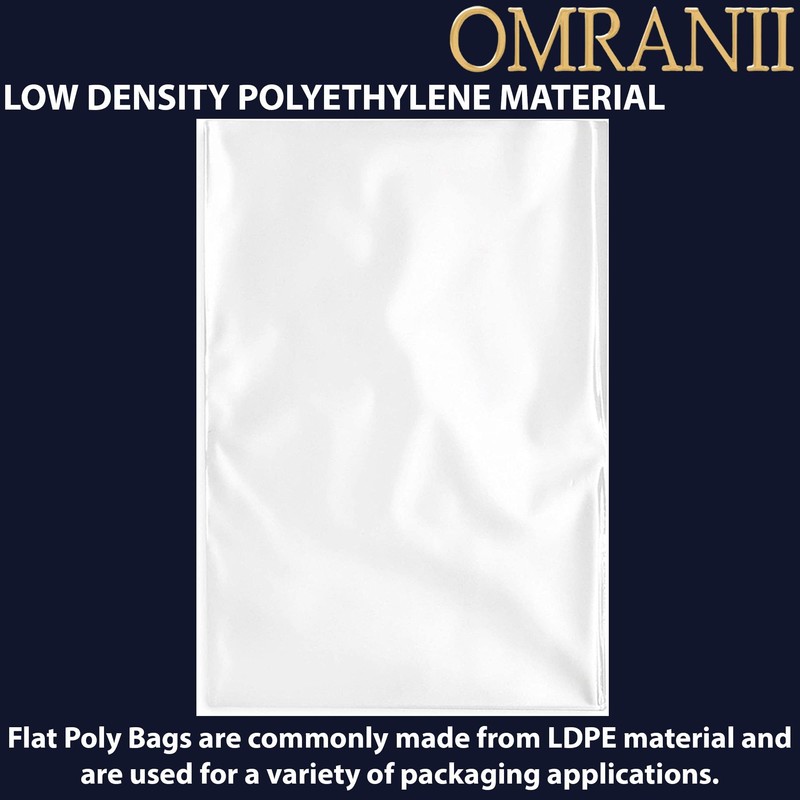 - 𝗠𝗮𝘁𝗲𝗿𝗶𝗮𝗹: Poly flat bags are thin, flexible plastic bags that have a flat, rectangular shape with no gussets or folds. They are commonly made from low-density polyethylene (LDPE) and are used for a variety of packaging applications.