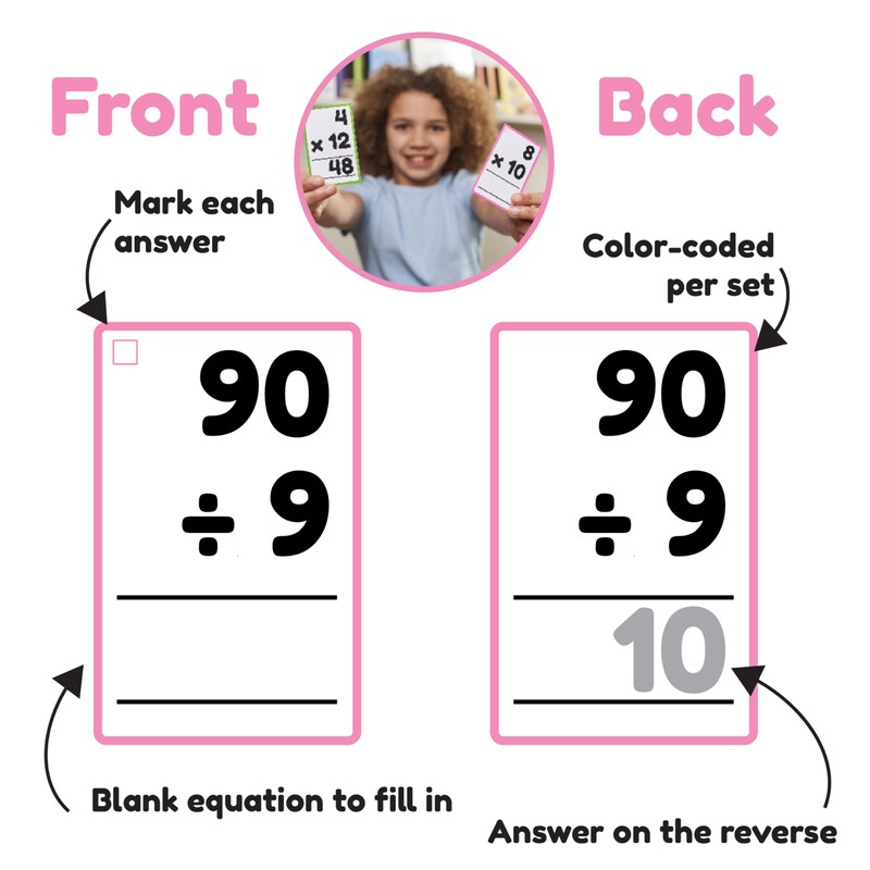 • INTERACTIVE LEARNING - Bright and clear multiplication and division flash cards including all facts on individual cards. Tailored for 3rd, 4th, 5th, and 6th graders, these flash cards are meticulously organized with dividers for effortless navigation. Elevate little ones learning experience, with the inclusion of a convenient wipe-clean pen and eraser, empowering them to self-check their progress.