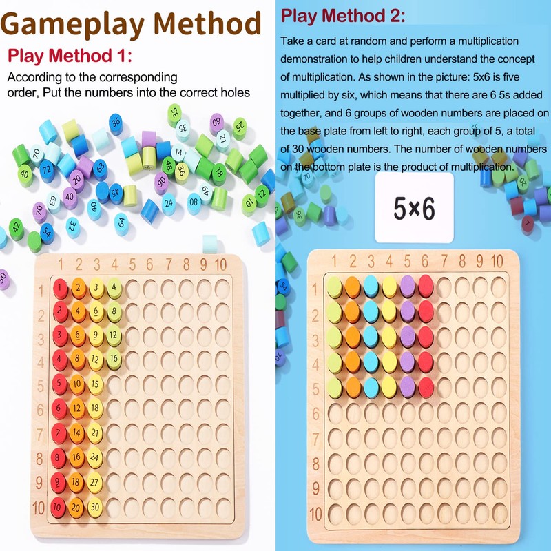 - Multi-purpose Montessori educational toy: multiplication table for learning numbers, arithmetic, learning colours. It is a good tool for early education to promote children's spatial thinking and improve fine motor skills. Our wooden multiplication board game can be used as an intellectual maths learning toy, suitable for home, maths centre, classroom, primary school and more. and also Montessori maths toys for primary school grades 1, 2 and 3.