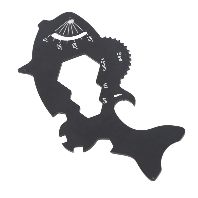 1、[15 in 1] This multitool card contains 15 different functions, acting as a bottle opener, keychain, wrench, protractor, screwdriver and more, catering to your diverse needs. 2、[Stainless Steel Material] Made from stainless steel, this credit card tool is resistant to wear and tear, ensuring long lasting durability. 3、[Unique Design] With its unique fish shaped design, this wallet multitool stands out from the crowd and adds a touch of personality to your everyday carry. 4、[Compact and Portable] Thanks to its compact size and lightweight design, this pocket multitool easily fits into your pocket or wallet, enabling convenient carrying. 5、[Versatile Applications] Suitable for a wide range of scenarios, from everyday household use to travel and outdoor adventures, this multitool is a reliable tool for various applications.