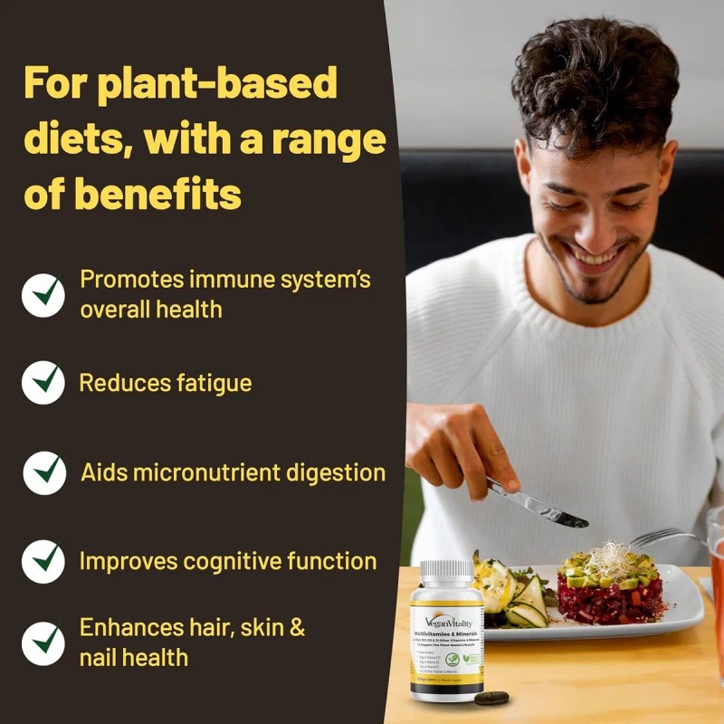 Para veganos, verduras y dieta a base de plantas. Nuestros multivitamínicos veganos para mujeres, hombres y otros han sido diseñados específicamente para cumplir con los requisitos nutricionales de veganos y vegetarianos, mientras que también son adecuados para no vegetarianos y veganos. Aunque muchas otras vitaminas veganas se anuncian como, simplemente no están diseñadas para la dieta a base de plantas, y no proporcionan los niveles que proporciona nuestro producto.
