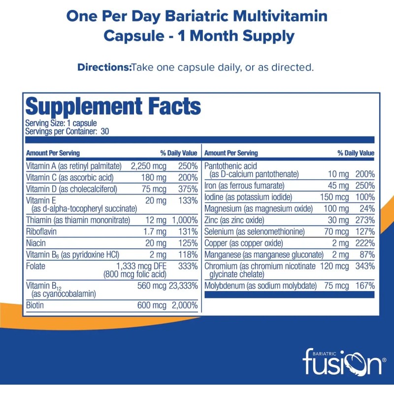 Multivitamínico Bariátrico con Hierro 45 mg | 30 Cápsulas | Suplemento Especializado para Pacientes de Cirugía Bariátrica | Apoyo Nutricional y Prevención de Deficiencias