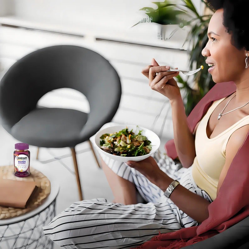 Multivitaminico Centrum Para Mujer Sabor Frutas 170 Gomitas formulado para promover el bienestar de todo el cuerpo con el 100% del valor diario recomendado de vitaminas B12 D y biotina para la mujer