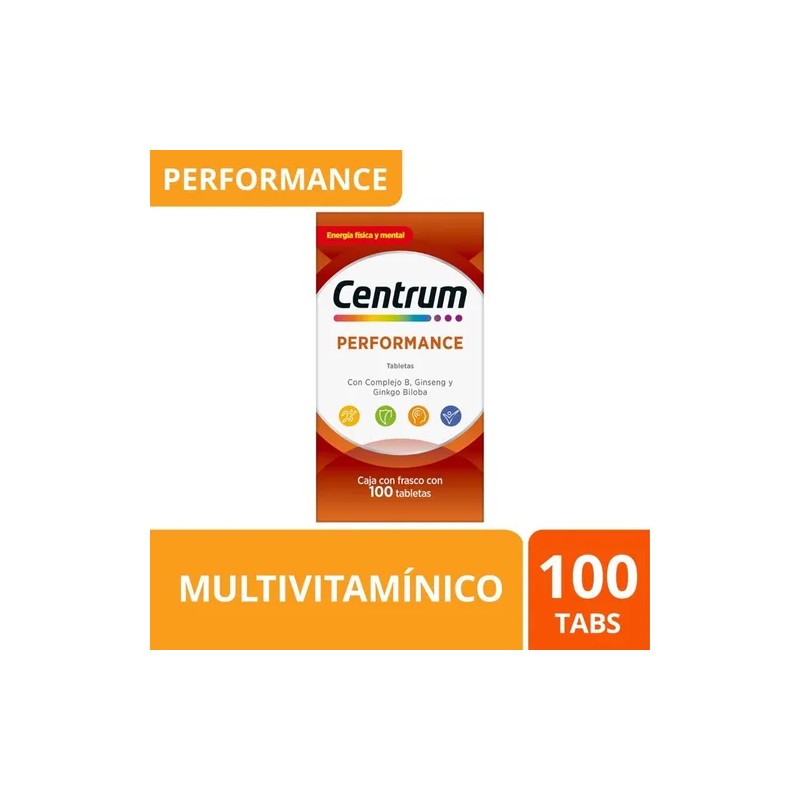 Centrum Performance es un multivitamínico formulado para satisfacer las demandas energéticas de adultos con un estilo de vida activo y necesidades nutricionales específicas debido a actividades físicas o mentales intensas. Además de mejorar el rendimiento físico, Centrum Performance respalda el sistema inmunológico, la función cognitiva y reduce la fatiga mental. Ayuda a mantener tu energía, preserva la función muscular y mejora la concentración en tus actividades. Las vitaminas Centrum se indican para deficiencias de vitaminas y minerales y actúa en deficiencias como la disminución de la capacidad física y mejora las condiciones de respuesta al estrés, manifestado como cansancio, debilidad y falta de atención.
