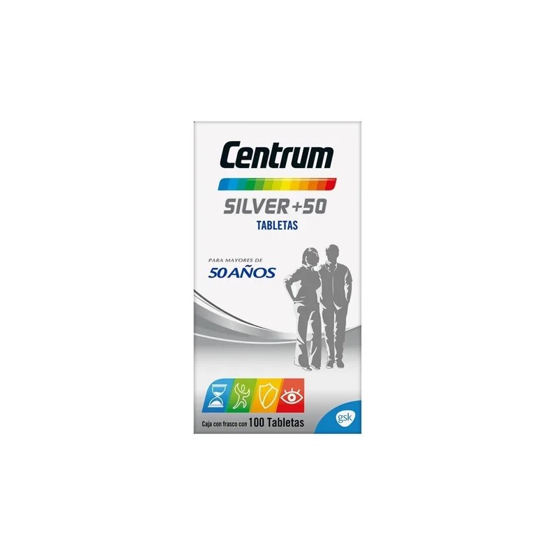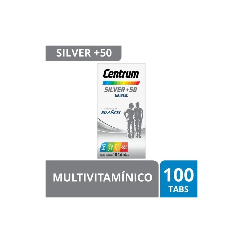 Multivitamínico Centrum Silver +50 Adultos con Vitamina B Vitamina C Calcio Potasio y Zinc 100 Tabletas Sin sabor
