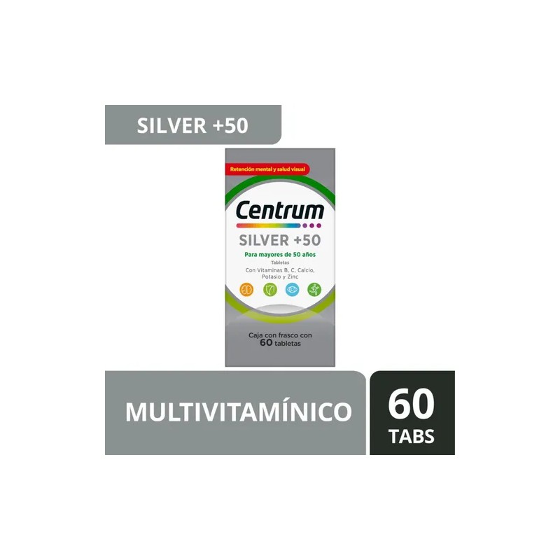 Multivitamínico Centrum Silver +50 Adultos con Vitamina B Vitamina C Calcio Potasio y Zinc 60 Tabletas
