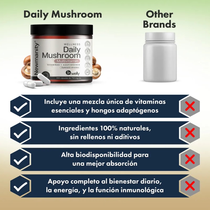 Multivitaminico Daily Mushroom Multivitaminas - 300 Cpsulas de Hongos Adaptgenos con Cordyceps y Hongo Melena de Leon con Hongo Reishi, Shiitake para