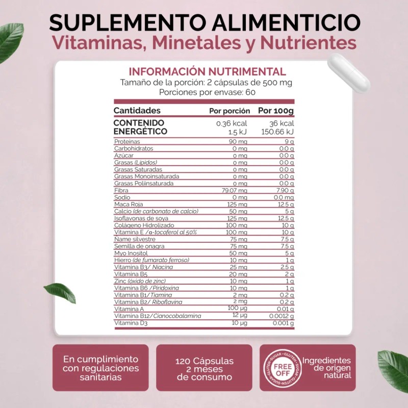 Multivitaminico Mujer Premium Colageno Hidrolizado, Isoflavonas Soya, Inositol, Maca, Onagra, Calcio, Complejo B, Zinc, Vitamina B12 Ideal 40 Aos...