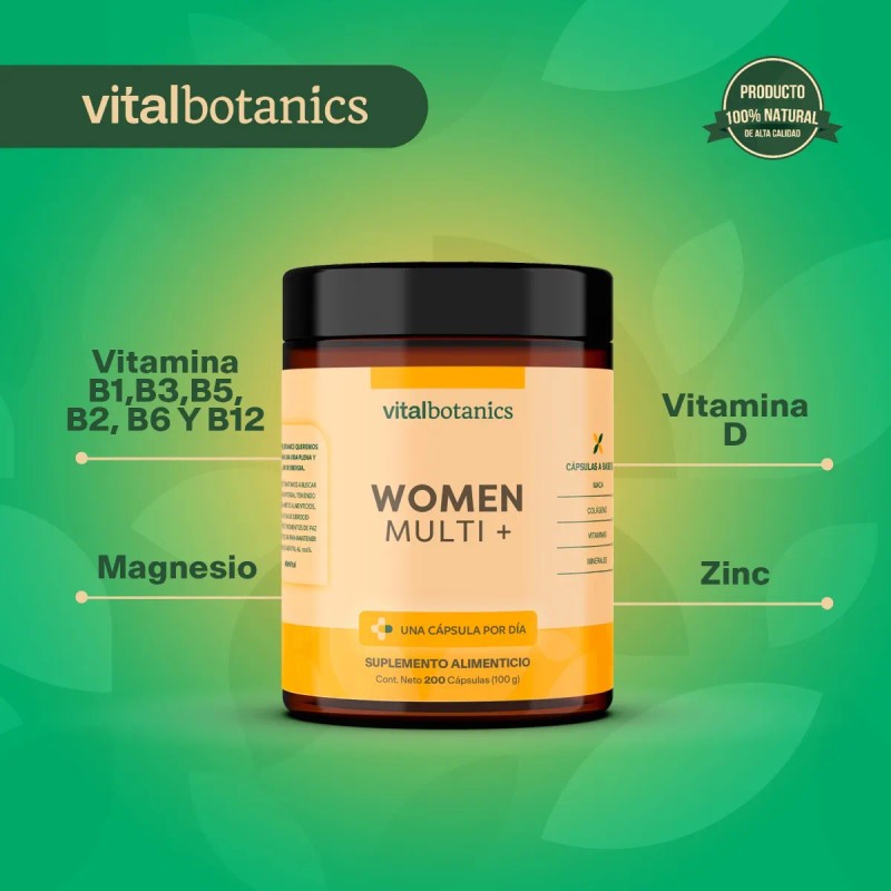 Multivitamínico para Mujer Women Multi + de VitalBotanics con 200 capsulas de 500 mg (0.5 g)