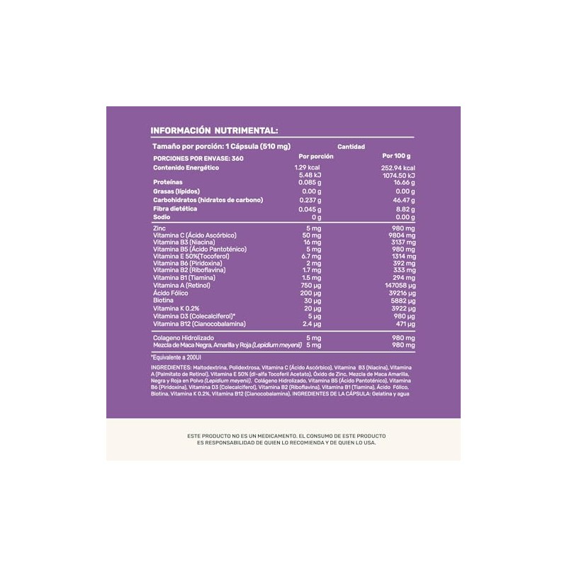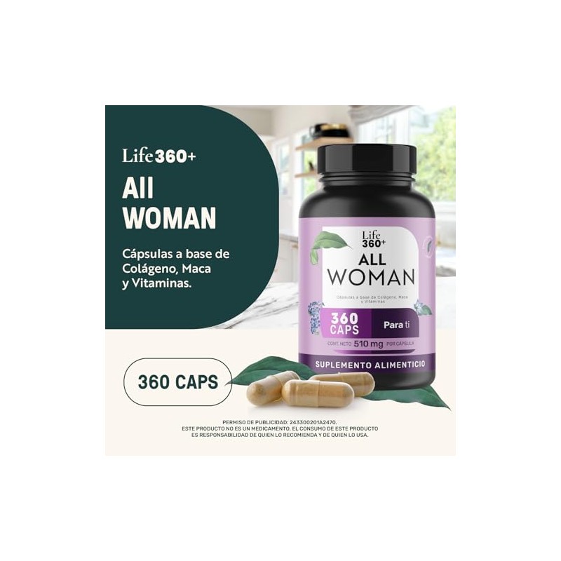 LIFE 360+ - Multivitamínico Suplemento para Mujer | 360 Cápsulas con Colágeno Hidrolizado, Biotina, Ácido Fólico, Maca, Vitamina A, C, D, B12, K, Zinc |360 porciones, 1 Cápsula por porción| Suplemento Alimenticio con Ingredientes de origen natural. 💯 Autenticidad y máxima durabilidad comprobadas. Diseño ergonómico y funcionalidad excepcional. 🔥 Alta demanda - Stock limitado. Ideal para quienes buscan lo mejor en calidad y estilo. Producto auténtico con satisfacción total asegurada. ¡No te quedes sin el tuyo y aprovecha esta oportunidad única!