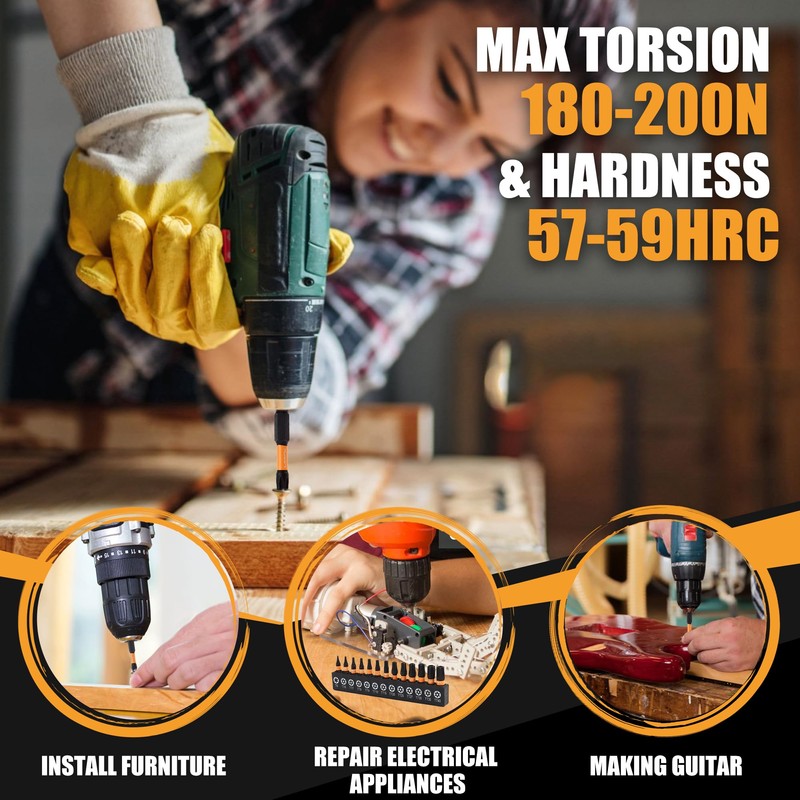 - USAGE VERSATILITY - 1 & 2 inch torx bits fit for electric screwdriver, hand screwdriver, electric drills & air drills. Ideal for working on vehicles, bicycles & furniture. Assembling/repairing your furniture in an easy way.
